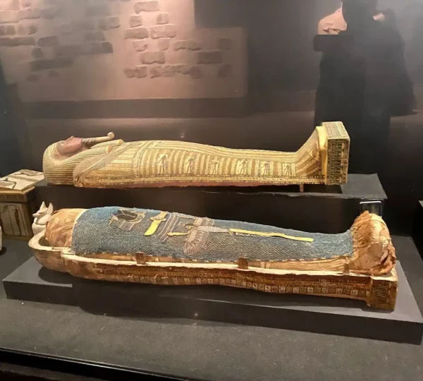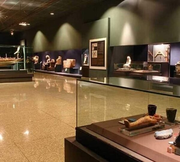 Next, your tour continues just a short distance away to the Mummification Museum, a rare and fascinating window into one of ancient Egypt’s most mystifying practices. Situated across from the Mina Palace Hotel, this museum overlooks the Nile and is dedicated to the ancient art of preserving the dead. Inside, you’ll discover the various techniques and tools that were used to prepare not only human bodies but also animals for the afterlife. On display are mummified remains of cats, crocodiles, and even fish, giving insight into the spiritual significance the Egyptians placed on all living creatures. Exhibits also include embalming tools, canopic jars, and ritual artifacts that were once essential to funerary practices.